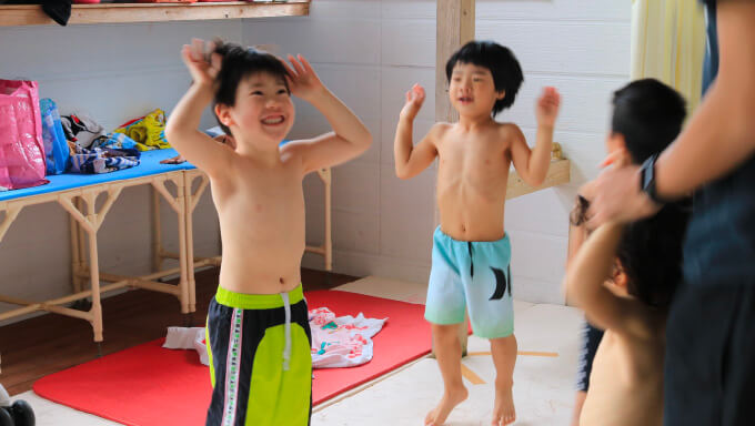 温かいシャワーでしっかり体を流したら、お着替えの時間。 -