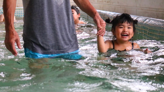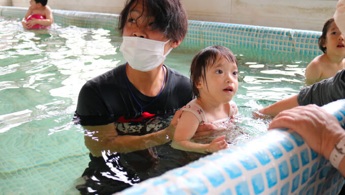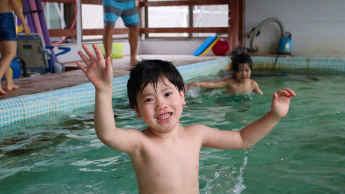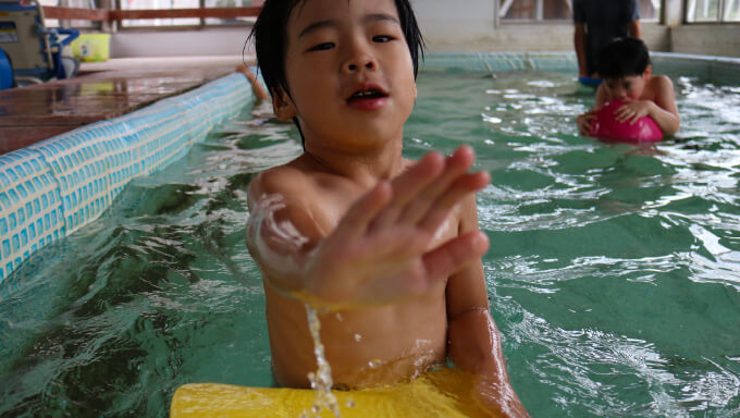 ヨーロッパ各国の療育で一般的に取り入れられている水治療。水の抵抗に体をゆだねて心地よさを味わいながら、平衡感覚へのアプローチを行うことができます。