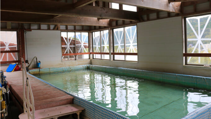 さんりんしゃ敷地内にある「水治療棟」の温水プールにて活動します。